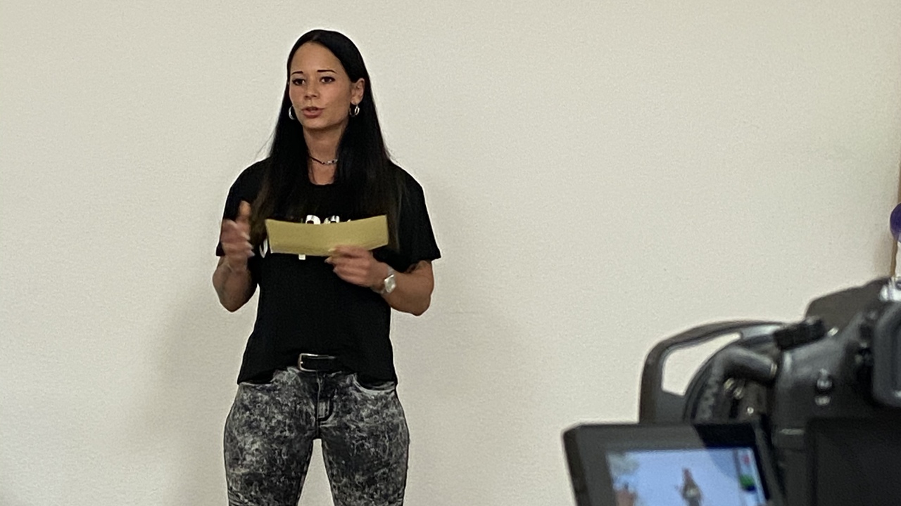 Vortrag vor Publikum mit Kamera und Mikrofon. Persönlichkeitsentwicklung, Verbesserung des eigenen Auftretens, Selbstwahrnehmung. Auch das ehrliche aber natürlich subjektive Feedback der ganzen Gruppe hilft hier, die eigene Wahrnehmung und das Selbstbewusstsein zu verbessern.